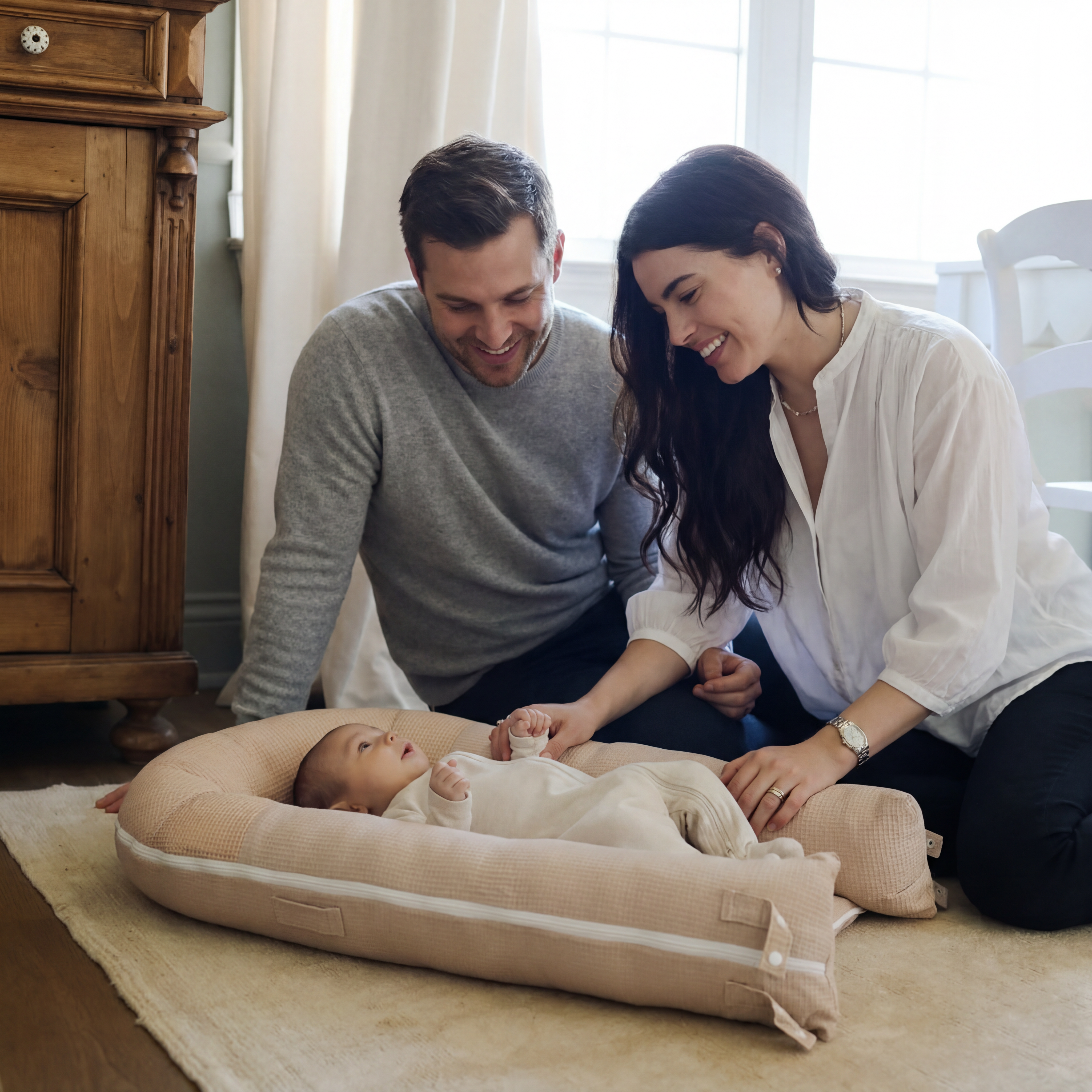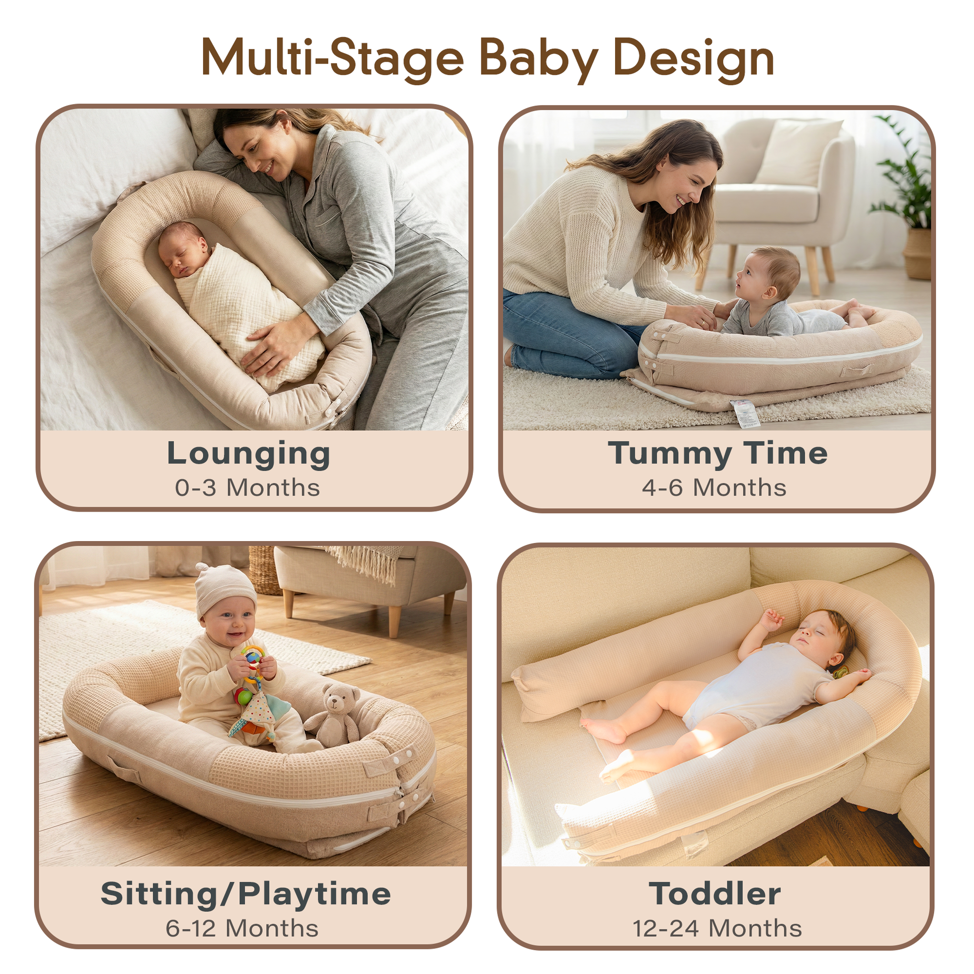 Place the lounger on a flat, stable surface and gently lay your baby inside. It’s perfect for supervised lounging, relaxing, and bonding time. Always stay nearby while your baby is using the lounger.