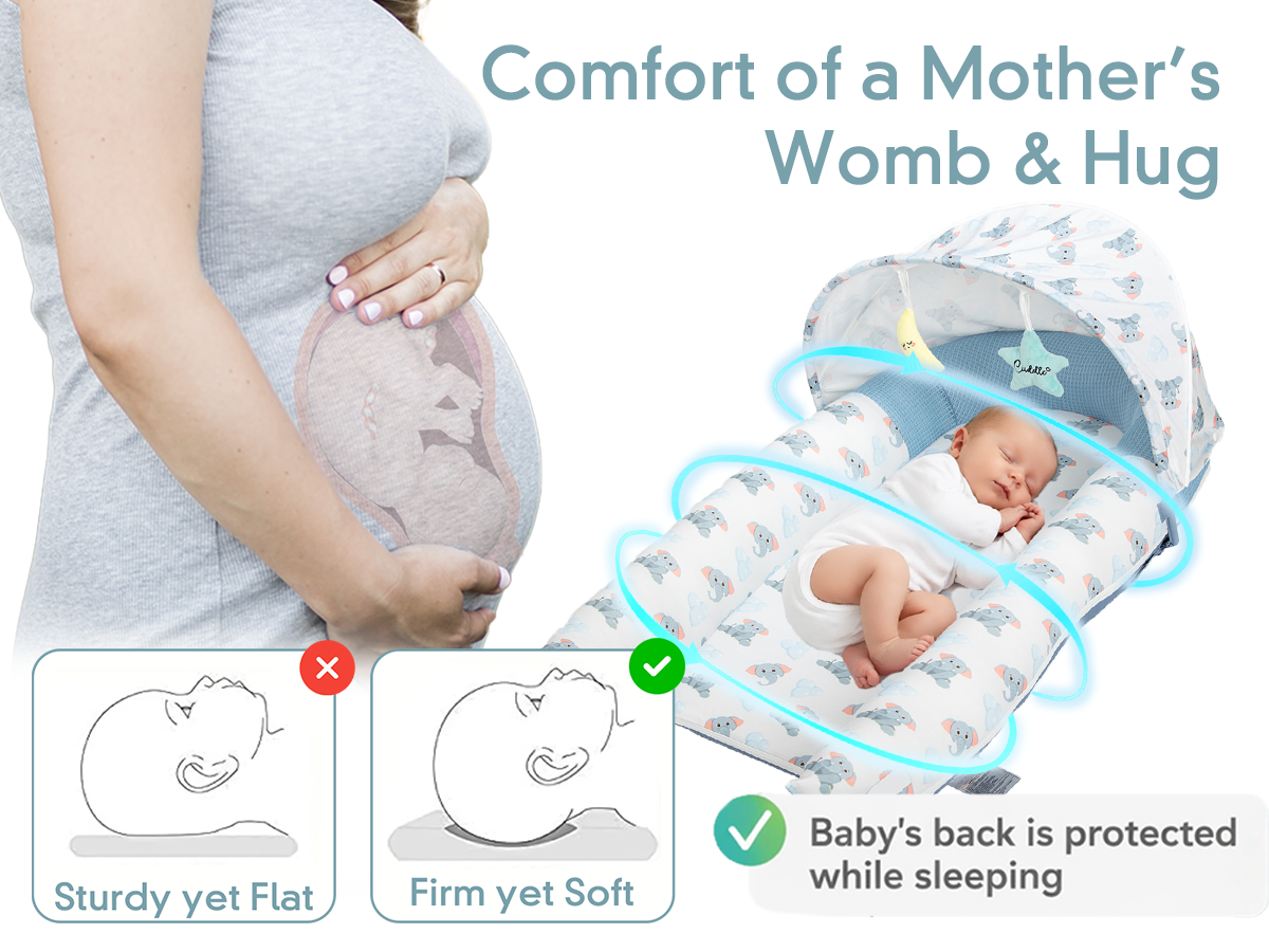 Designed to mimic the cozy, secure feeling of the womb. The 360° raised bumper creates a safe, snug environment that helps your baby feel protected and calm.